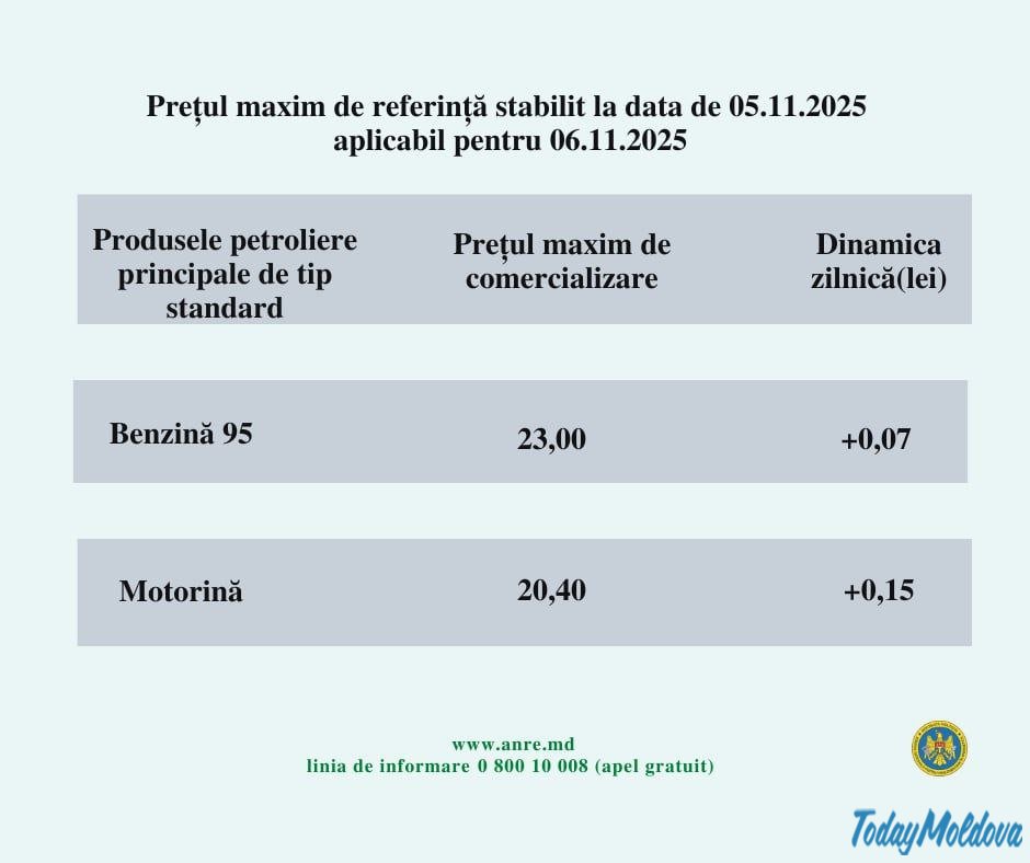 На 7 банов дорожает бензин с октановым числом 95 - водителям за литр придется отдать 23 лея, и аж на 15 банов дорожает дизтопливо, один литр будет стоить 20 леев 40 банов.