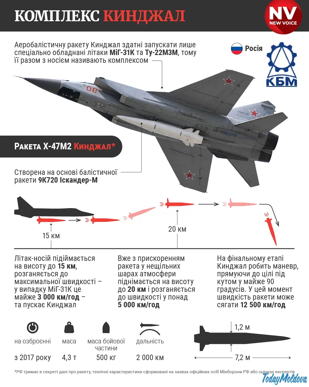 Тактико-технические характеристики ракеты «Кинжал»